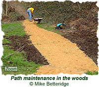 Most of the path building and maintenance tasks are carried out on regular Action Days organised by the Friends group. There is usually one Action Day each month, and the sessions last about two hours (although people aren't expected to stay the whole time unless they want to). Anyone is welcome to attend these Action Days, and all help is gratefully appreciated. All equipment that might be needed is supplied by the Friends, including gloves, spades, rubbish bags, litter picking claws, etc.